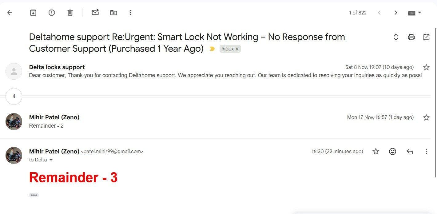 Delta smart lock is covered under 2-year Replacement warranty. During this time, any door lock with manufacturing defects will be troubleshooted, repaired or replaced FREE of cost. Delta India has a simple and effective mechanism by which customer can contact it and raise a complaint. below link makes available the following links: